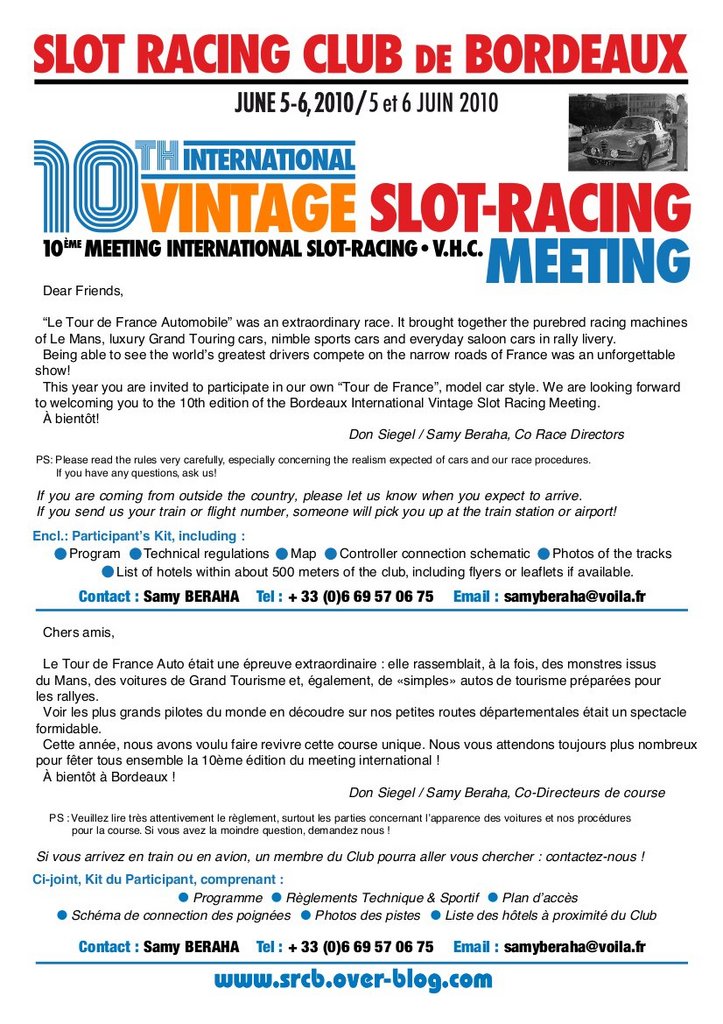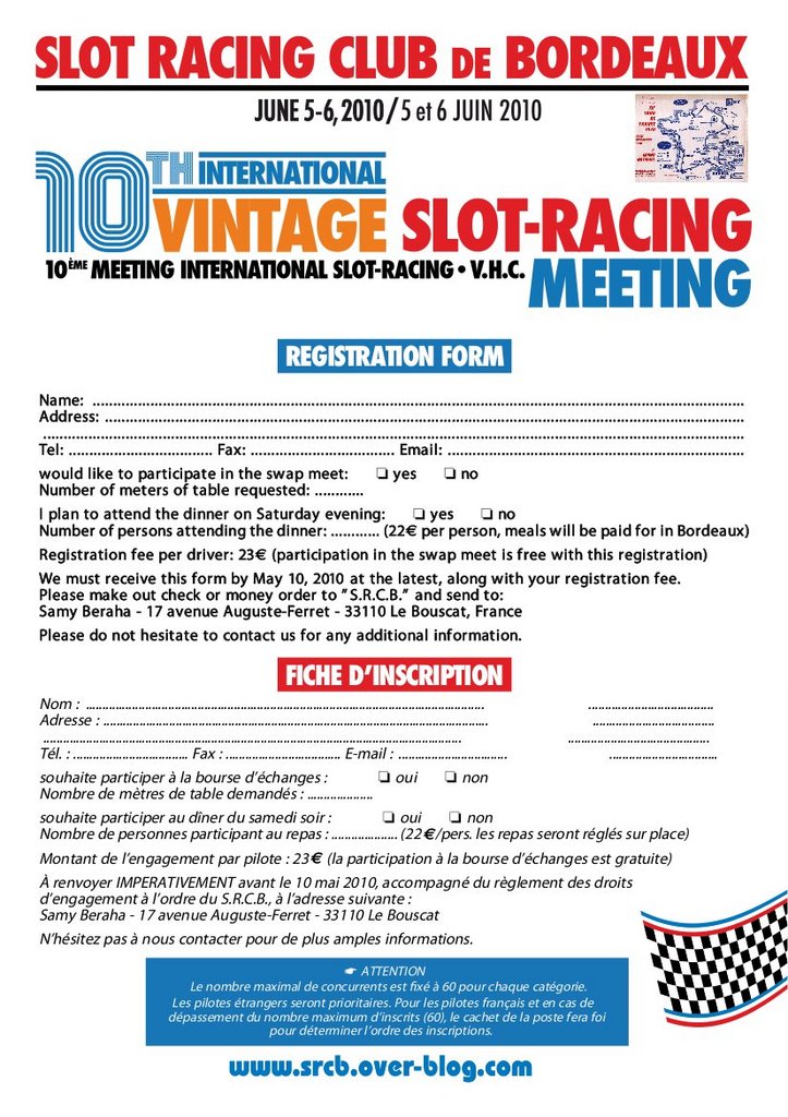 pour 10° MEETING INTERNATIONAL VINTAGE SLOT-RACING BORDEAUX 2010