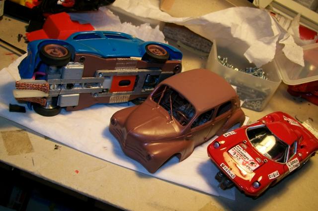 moi, j'ai mon 4cv accident feu 1/24° et ferrari 250 lm rouge 1/32°