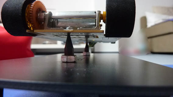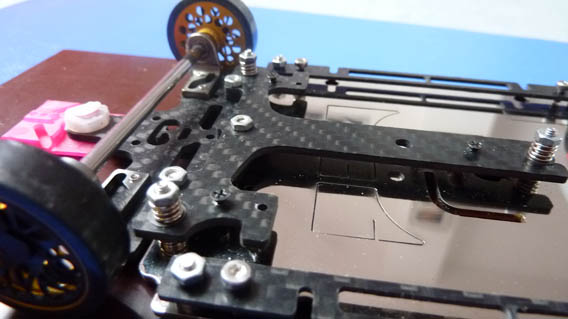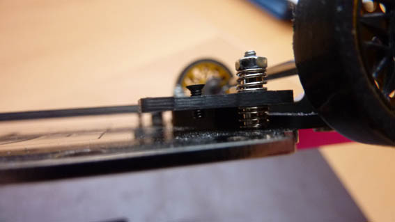 La tite vis blanche juste ce qu'il faut pour que les roues avant effleurent tout juste la piste...