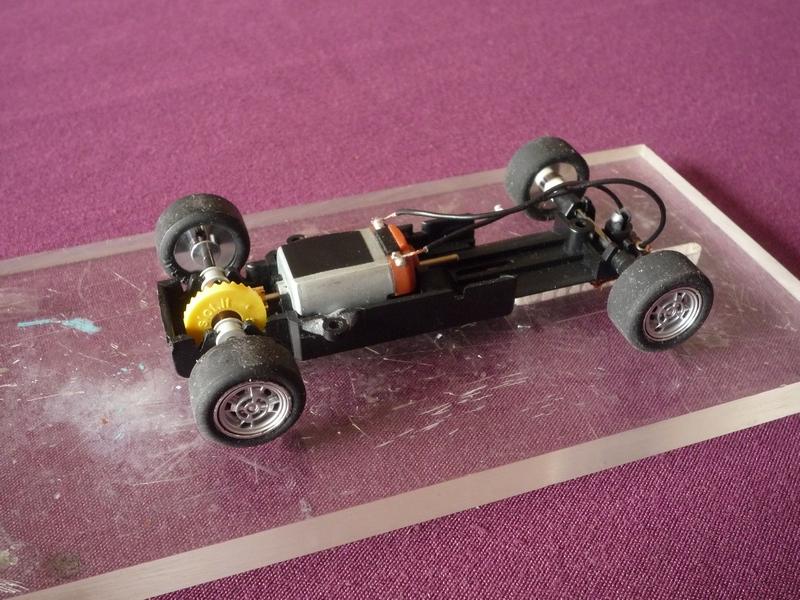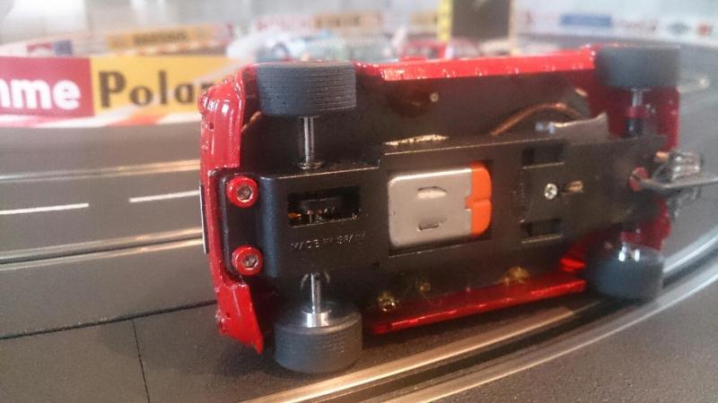 A part le guide qui est un Ninco suspendu, le reste de la mécanique est pioché dans le catalogue Slot.It : moteur tête orange, jantes alu 15x8, axes et couronne.