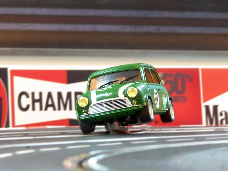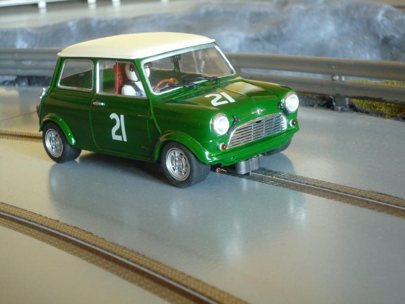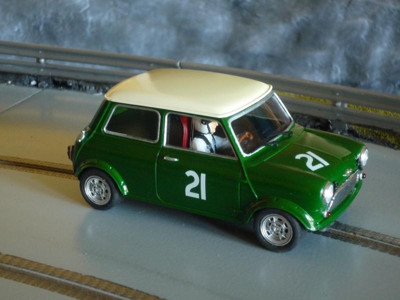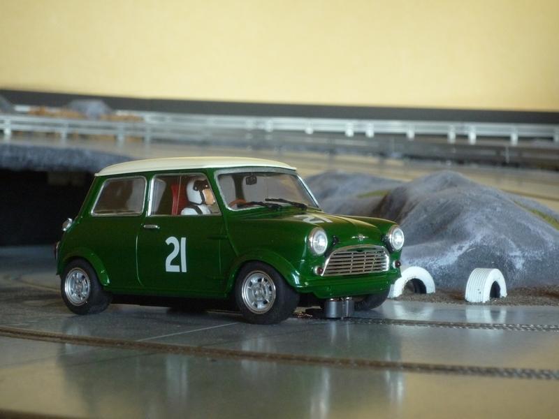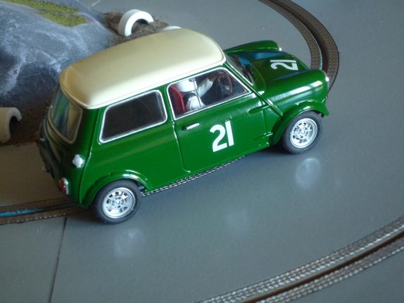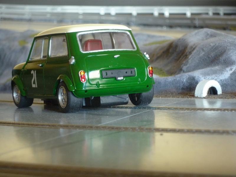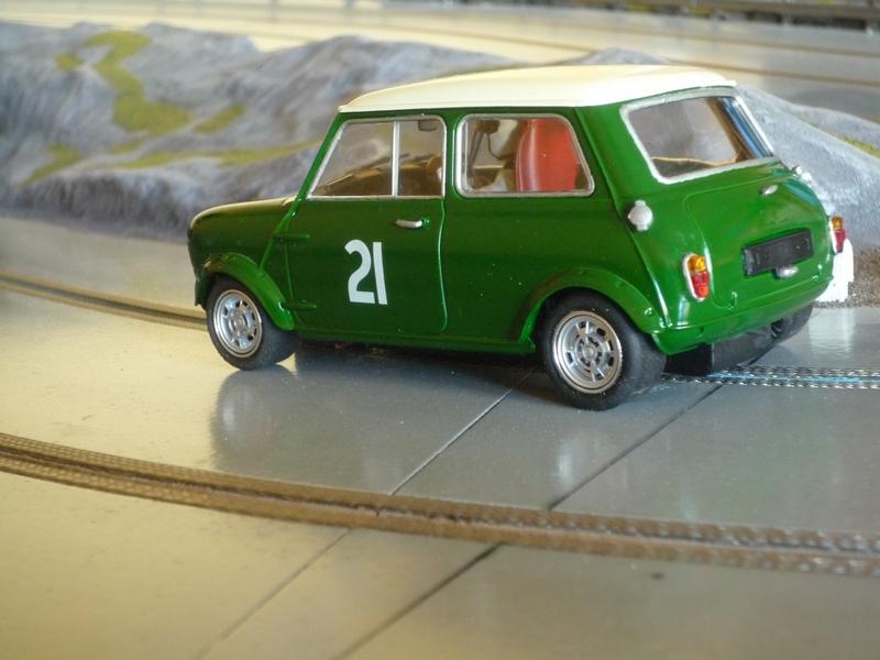 Je viens donc de finir mon 1er scratch au 1/24, une Mini Cooper montée sur un châssis SlotClassic dont j'ai dû modifier l'arrière du fait de l'absence de porte-à-faux de cette auto.