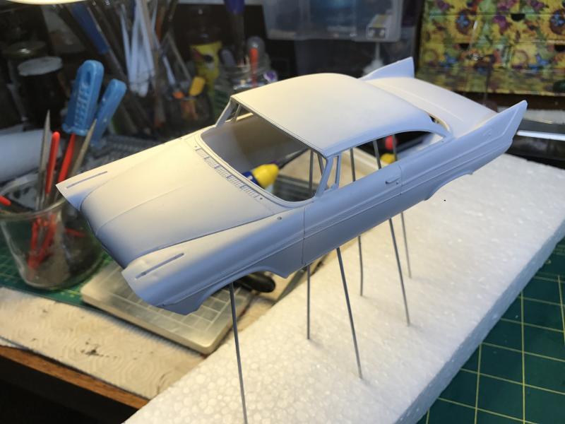C'est donc mon 1er scratch à partir d'une maquette plastique. C'est du 1/24 (1/25 pour être précis, marque AMP). Mon choix , c'est pour le souvenir du film de mon adolescence: j'avais adoré, même si le film a un peu vieilli.