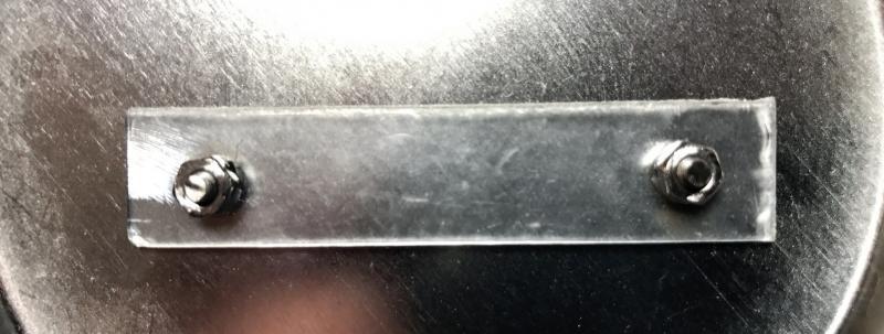 2 languettes en plastique de 2 mm d'épais, 2 vis de 2mm, 2.5mm ou 3mm à tête fraisées vissées dedans au même écartement que les trous des équerres.Les vis ne doivent pas dépasser de plus de 2mm.