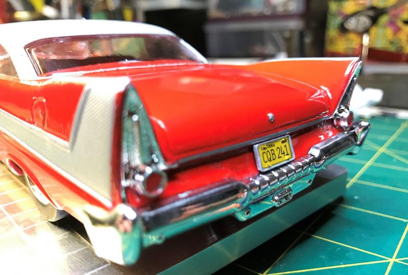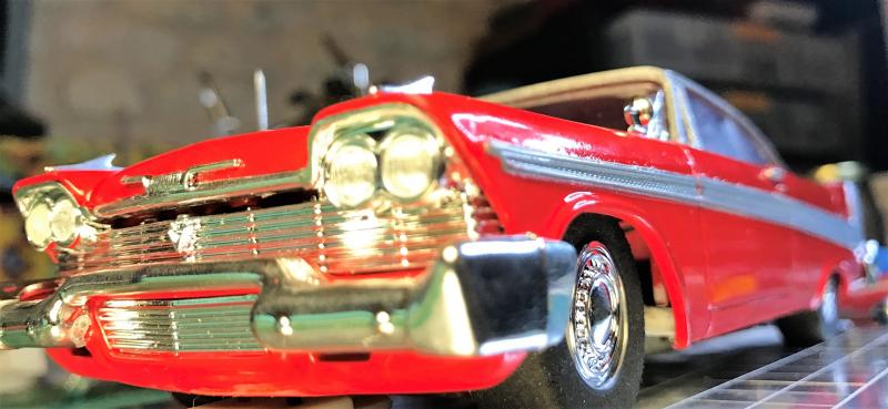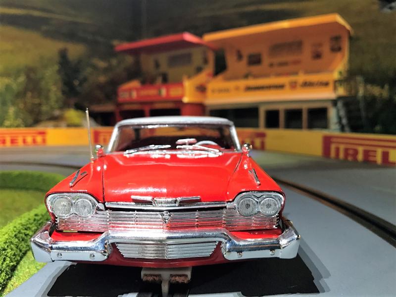 Voici donc ma maitresse de ces derniers jours. Elle n'est pas parfaite (en particulier les chromes des vitrage qui n'ont pas été du tout compatible avec le vernis: craquelures) mais je l'aime bien car c'est mon vrai 1er scratch (mis à part du Nsr à monter mais cela n'a rien à voir). Et en plus elle roule, elle est énorme, heureusement que j'ai remis des bordures partout sur ma piste.