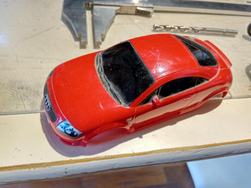 Pourquoi ce modèle, c'est la coque de carrosserie la moins chère et déjà prête que j'ai pu trouver, et puis l'auto me plait bien ne souhaitant pas me lancer dans une peinture et décalque, déjà fait des maquettes statiques il y a longtemps mais plus assez équipé pour ça.