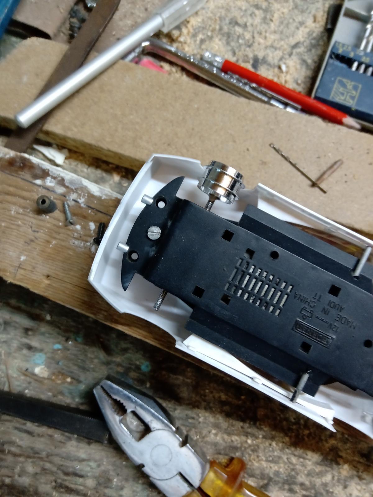 Etape 1 : Transformation du châssis pas grand chose à voir entre une audi et une Sunred donc pas mal de chose à revoir alors j'avoue je me suis lancé comme ça sans trop planifier et ça donne ça :