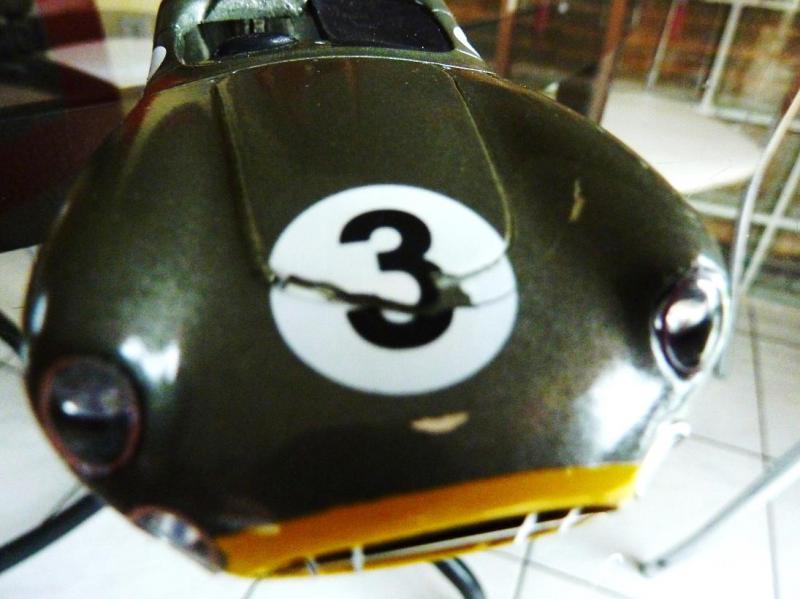 ha bein oui, j'ai du tout décaper et repeindre,à part que ce coup ci les N°3 sont moins conformes mais tans pis,je n'ai pas remis les cerclages de phares en photodécoupes car pas moyen de les ajuster,c'est tres difficile de les ceintrer sur plusieurs axes