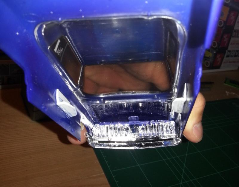 ...place à l'aileron de coffre et aux phares avants ainsi qu'aux antibrouillards. (Il est fortement conseillé d'utiliser une colle spéciale vitrage, qui devient transparente au séchage.)