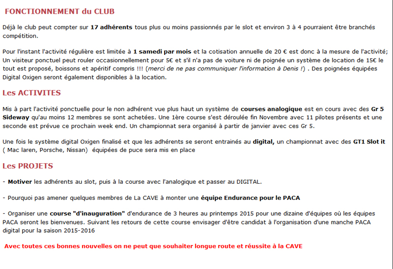 1 samedi par mois sera organisé une journée course si les membres sont ok.