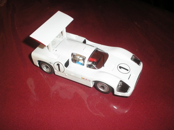 Bon j'ai testé ce soir mes voitures sur la piste carrera du club de bordeaux. la chaparral une fois l'aimant retirer est agréable a faire rouler,mais a du mal a tenir dans les courbes, une fois qu'elle aura des pneus "hortmann " tout devrais rentrer dans l'ordre.