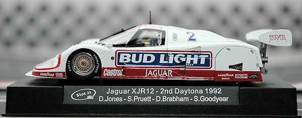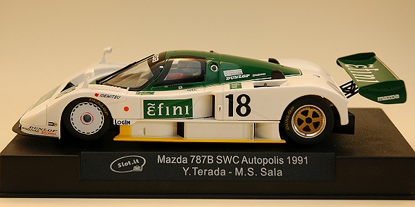 Mais un petit rappel des catégories réelles : les Jaguar XJR12 (et avant les XJR9) et les Mazda 787 étaient des Groupe C pour le Mans et le championnat mondial. Cela entre 1982 et 1991, pendant ces 9 longues années se sont battues entre elles les Porsche 956 / 962, les Lancia LC2, Les jaguar XJR9, XJR12, Mercedes C9, Mazda 787, Toyota 89c que nous proposent Slot-it.