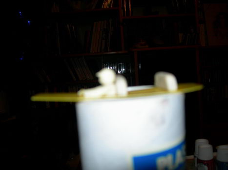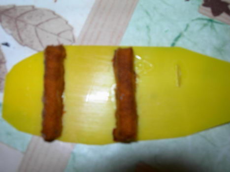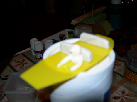 le pilote est juste posé pour voir !! la patte a modeler est collé a la super glu !!! ça tiens bien !!!! ensuite, j'ai decoupé dans du tissu marron des petits morceau que je colle sur la patte a modeler !!!