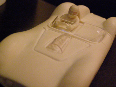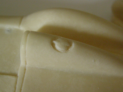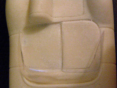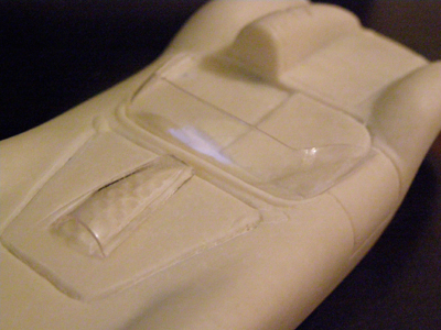 Ebavuration des rainures et accentuation de celles-ci sur le bouchon du réservoir, du capot pour donner plus de relief et celles du passage des pipe d'admission d'air ainsi que l'emplacement du pare-brise pour me permettre de mieux positionner le conduit d'air et le pare-brise.