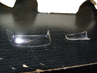 Comme vous avez pu le constater, le conduit déborde, je n'ai pas finit de le thermoformer afin de l'adapter parfaitement. Par contre, le pare-brise quand à lui s'adapte plutôt bien. Les angles sont pas assez arrondis par rapport à la carrosserie, mais en forçant légèrement et en le collant bien, il devrait tenir sans problème, d'où l'importance d'augmenter la profondeur des rainures