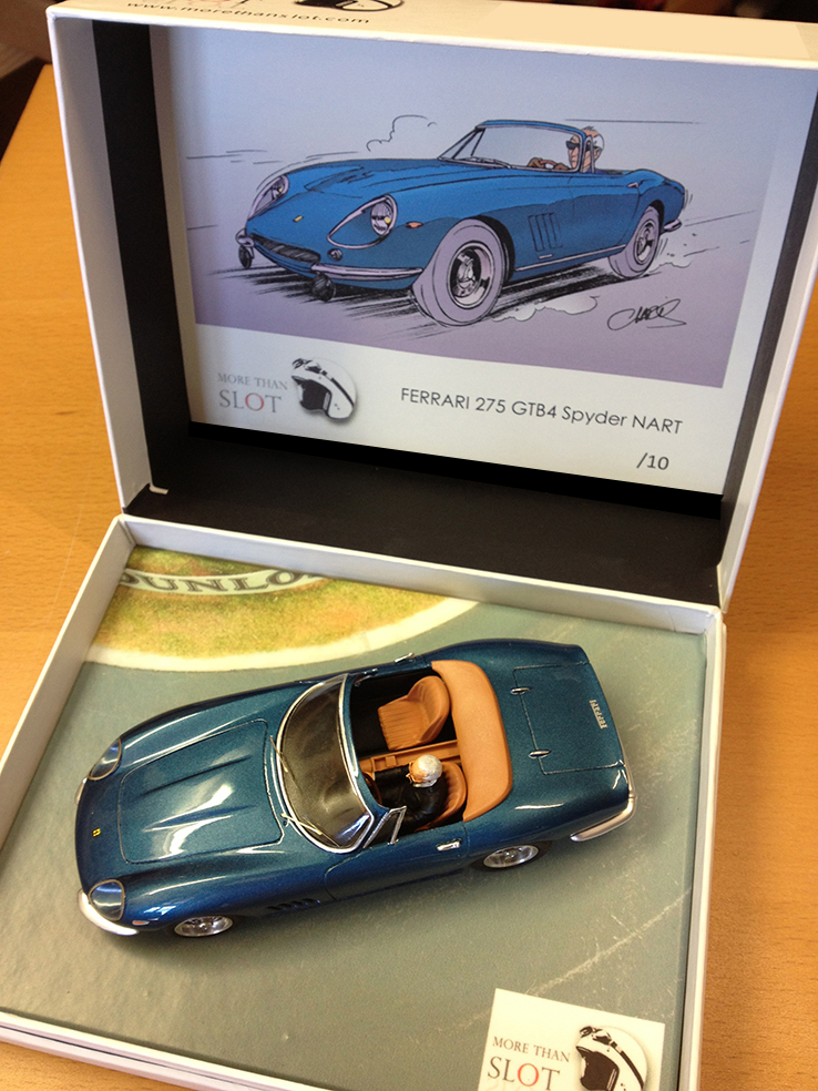 quelques photos de la 275GTB4 spyder NART en street version faite pour More Than Slot en RTR uniquement. disponible en rouge ou bleu, la grise est pour ma collection personnelle.