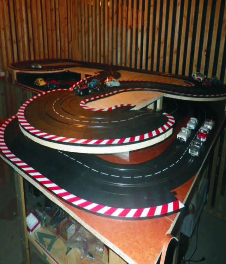 En quelques mots, en fin de semaine passée j'ai réaliser un tour de piste avec le montage définitif, tout me parait correct ... Certe ce n'est pas un circuit voué à une vitesse totale sur tout le parcour, la partie souteraine est très sinueuse, pas mal de boucles et virages, le pilotage se fait à la vue des phares, mais sitôt en lumière de longues droites permettent de belle pointe en vitesse, cependant la priorité était d'avoir un circuit sur trois niveaux ... la ligne de départ était prévue au début sur le premir niveau mais avec la nouvelle black box et le sens de roullement impossible d'y ajouter le pist top alors l'idée de la paserelle est venue sur le moment de fermer la boucle. Certe ce circuit sort un peu du lot et permet un long tracé d'où mon choix d'utiliser la surface maximale de la pièce... la suite très bientôt