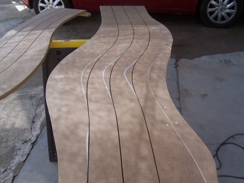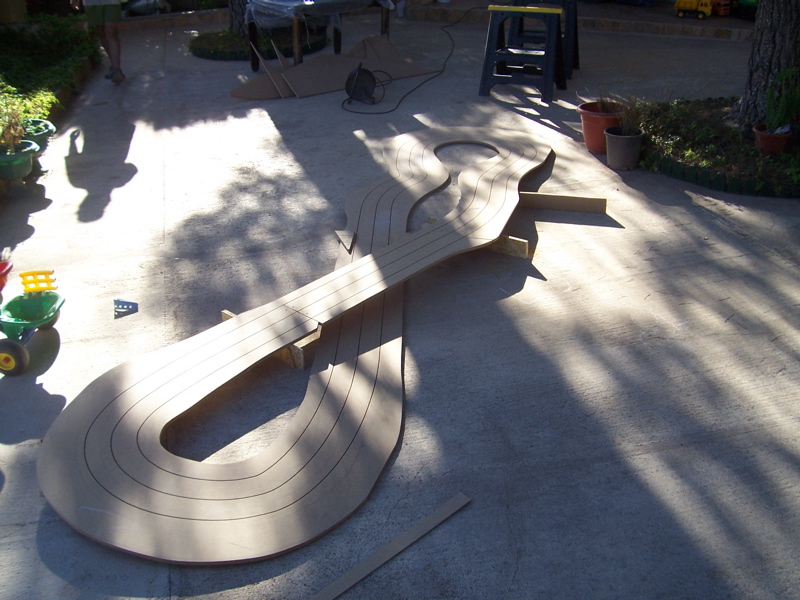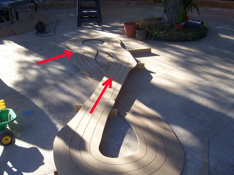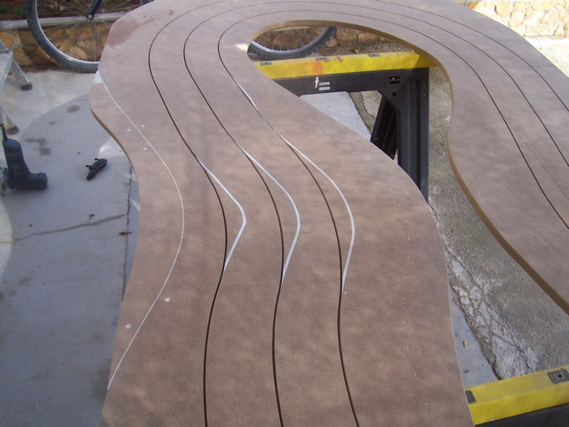 la partie de bois à l'extérieure du "pif-paf" en haut à gauche de tes photos ne me parais pas très large, c'est fais exprès pour la déco à suivre , sinon, tu n'as pas peurs que sa fasse juste, surtout sur le virage avant la ligne droite En parlant de déco, j'ai hâte de voire se que tu vas nous concocter cette fois Bon courage pour la suite