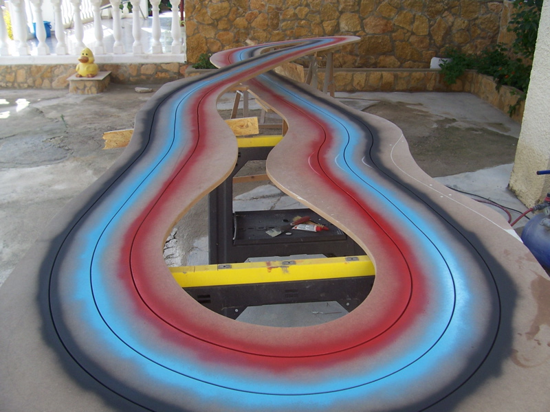 ma crainte pour le "pif-paf" c'est que les voitures restent parfois en travers, même après être sortie du virage et la zone de dérapage me parais un peu courte, mais sa vient peut être de l'angle de la photo Pour la déco