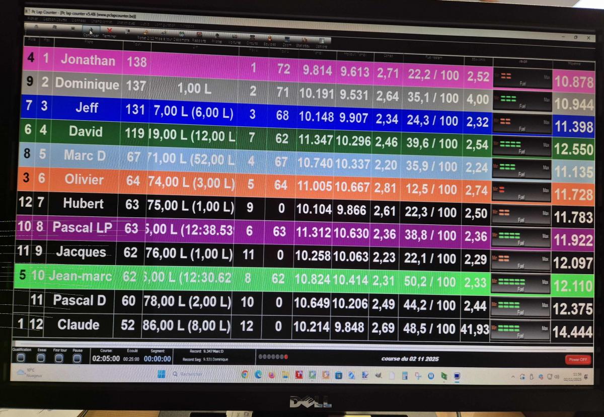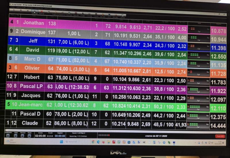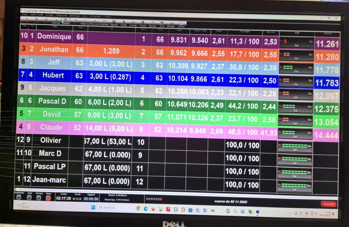 Ensuite il y aura la rotation des pistes, la programmation des voitures 2 par 2, puis celles-ci seront remises sur la piste par 2 autres pilotes.