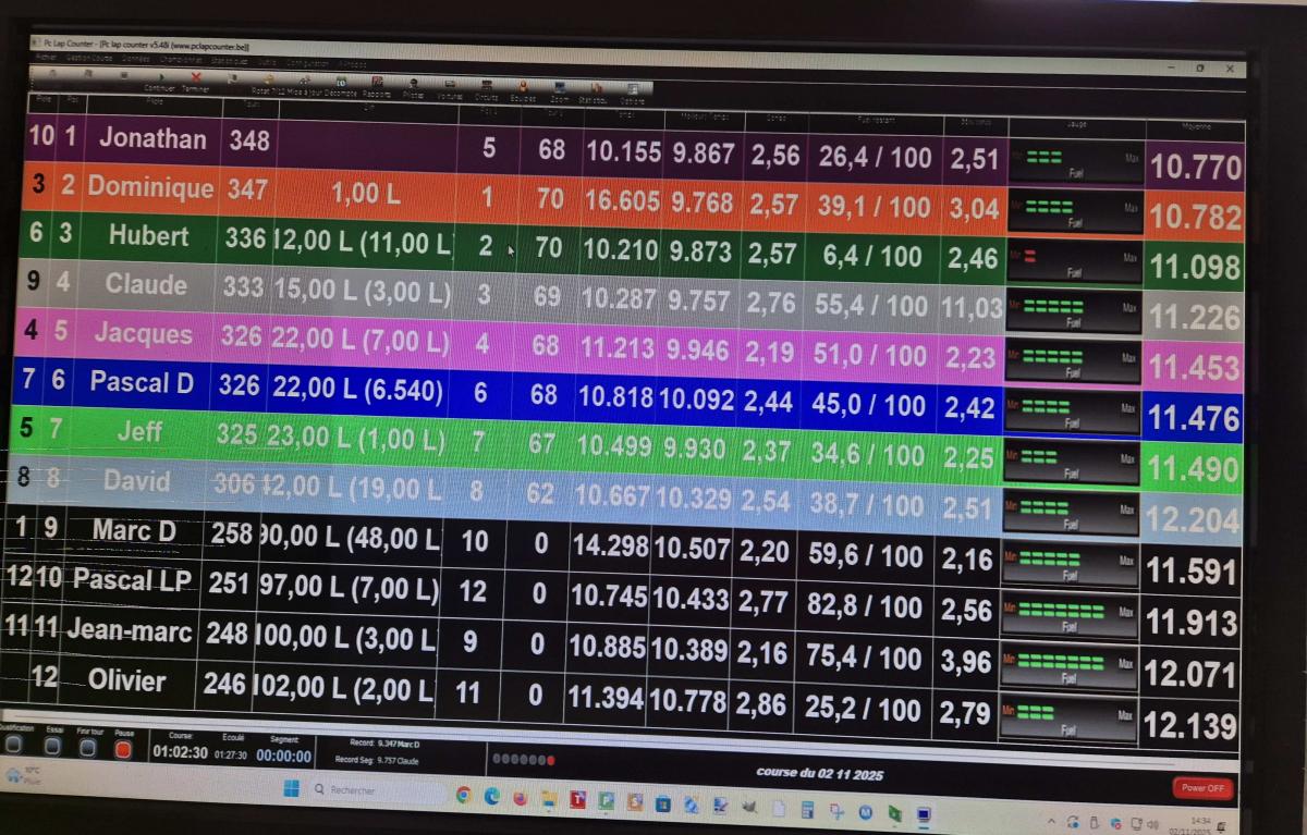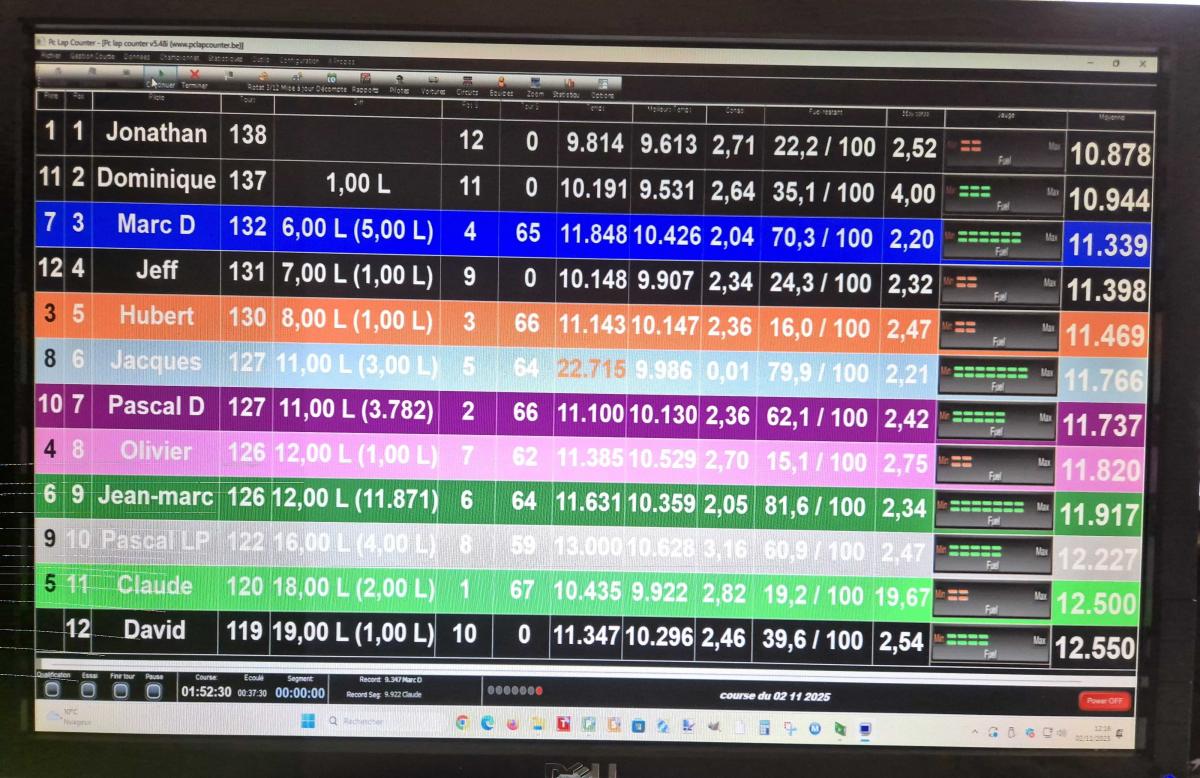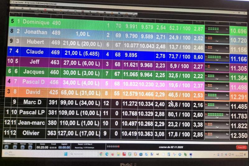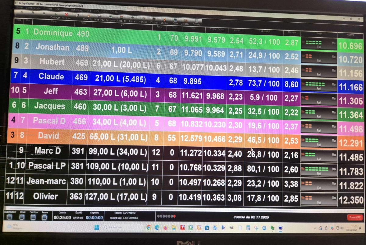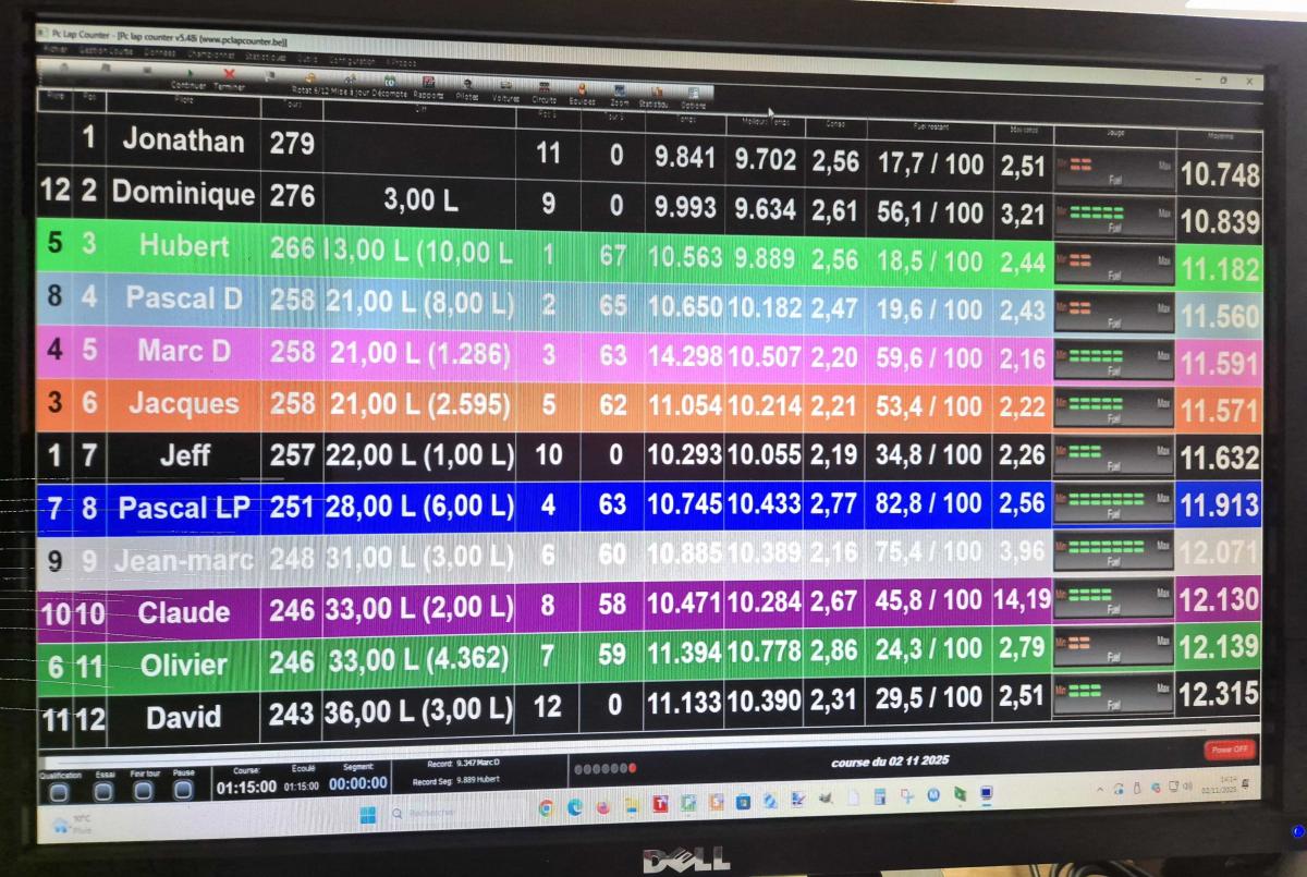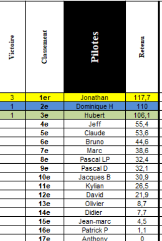 Ne pas tenir compte du classement de la course du 2 novembre, seuls les points affichés à droite sont corrects.