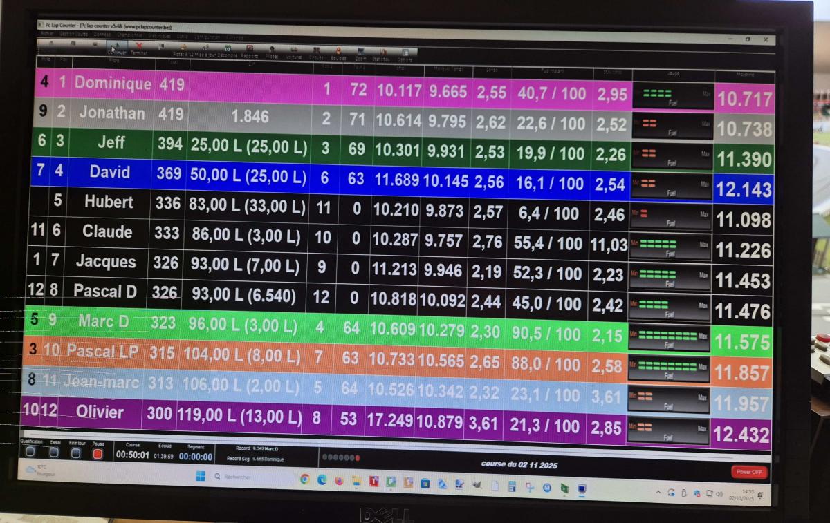 Dominique fait un carton plein, pôle position, meilleur temps en course et victoire.