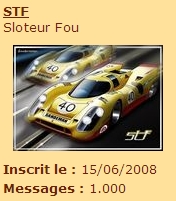 J'ai testé une F1 classique Scalex (Lotus 21) sur un Carrera (pas Go!! hein...) et c'était bien sympa contrairement à ce que j'attendais. Différent des autos aseptisées d'aujourd'hui. C'est tendu comme pilotage.