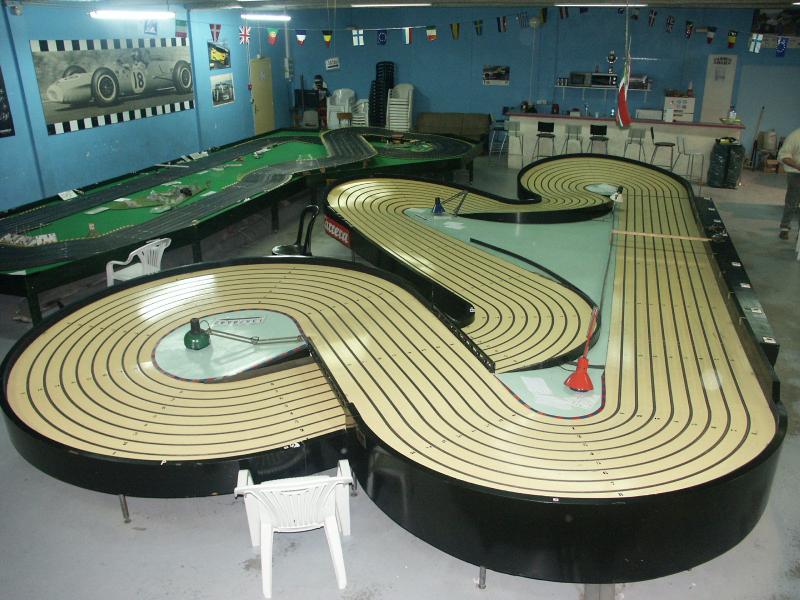 La piste bois AMF Black 8 voies 27m (on tourne en descendant l’escargot ou dans le sens horaire) et au font l'ancienne piste carrera remplacé par un nouveau tracé de 26 m en 6 voies