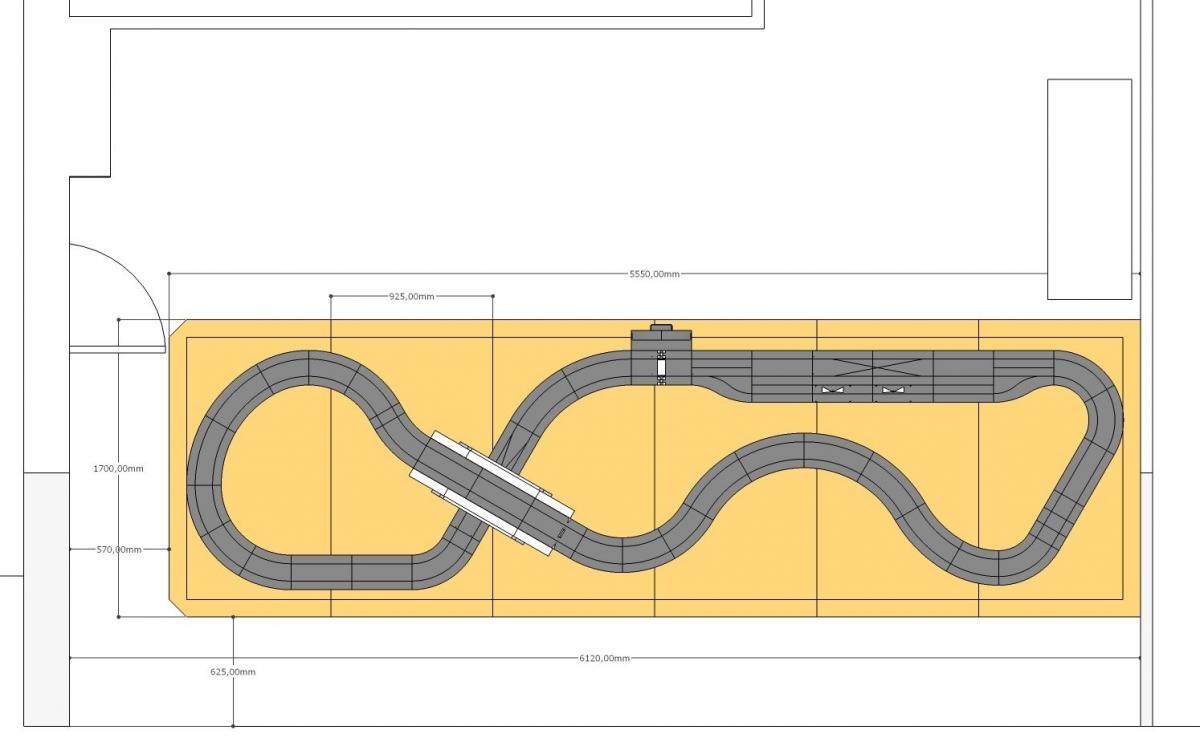 Peu de temps après avoir étudié mon projet, une opportunité de déménager s'est présentée à moi. J'ai donc différé sa réalisation et me suis concentré sur mon déménagement. Etant désormais dans un nouveau 'chez moi', bien plus vaste, je vais pouvoir dédier une partie de la surface d'une pièce de 27m² à la construction de ma piste.