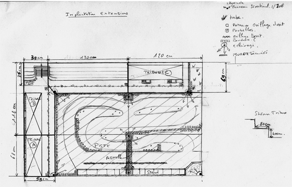 Tout d'abord les croquis avec la piste dessiné à main levé: