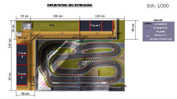 Hormis l'implantation des tribunes, le grillages droit, les poubelles et mes rampes d'éclairage, tous le reste à des chances d'être modifié à l'avenir. Ceci est là pour me donner une bonne idée d'implantation.