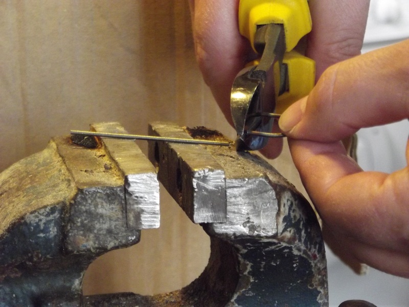 Pour finir, couper les tiges restantes en laissant un petit bout dépasser qu'il faudra limer légèrement, cela simulera un écrou de fixation ;-).
