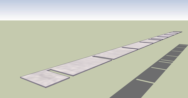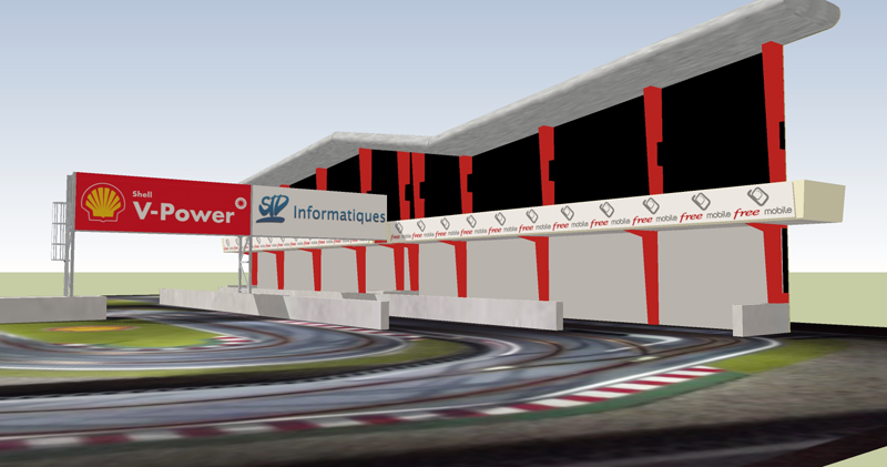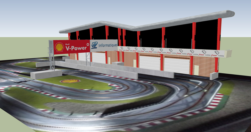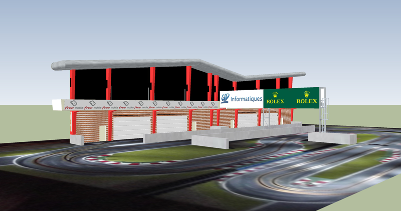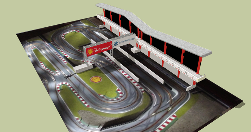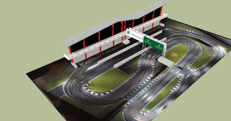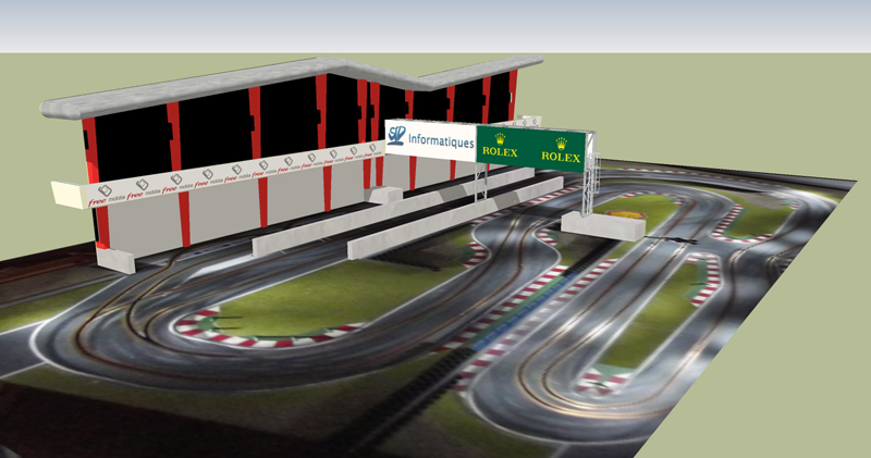Pour finir, voici les modèles intégrés sur une photo de ma piste en vu de dessus