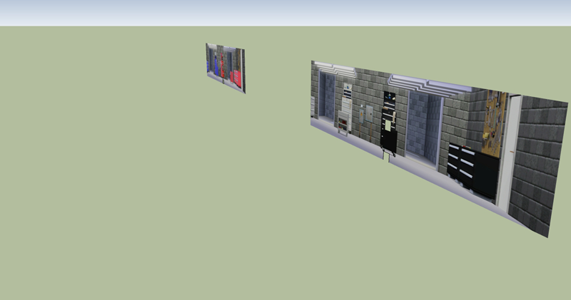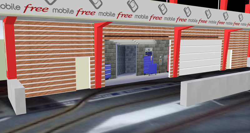 Les portes devaient être amovibles comme dans la réalité, mais au vu de l'espace disponible, impossible de créer des garages à l'échelle 1/32. J'ai donc trouvé une solution en utilisant des images de garages en trompe l'œil qui pourraient être éclairées en mode nuit.