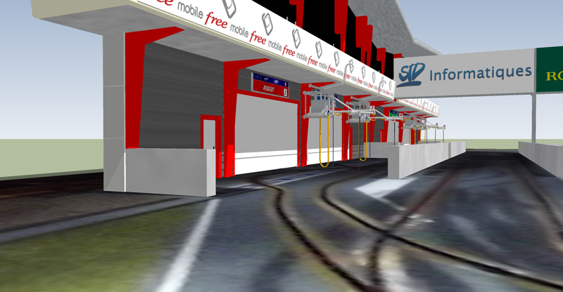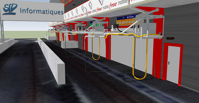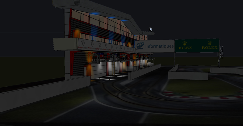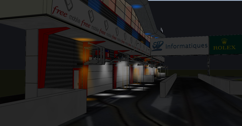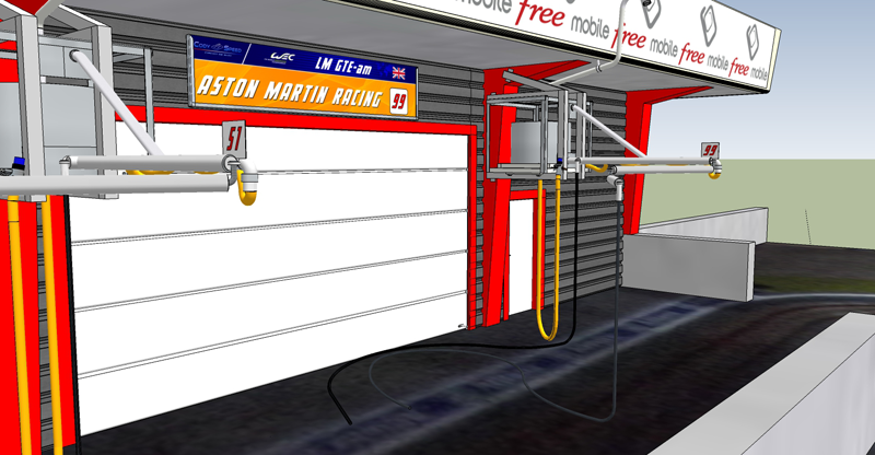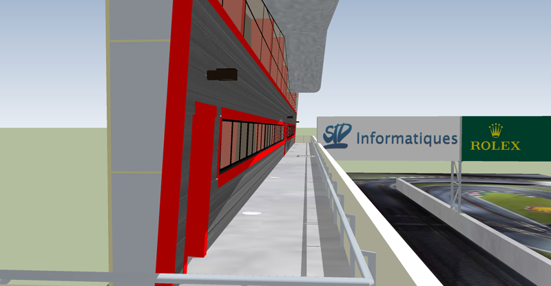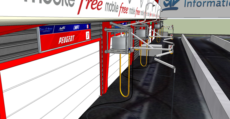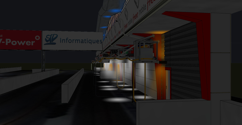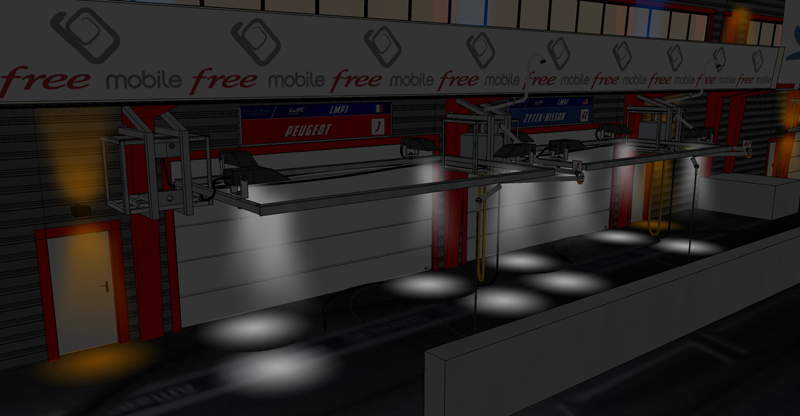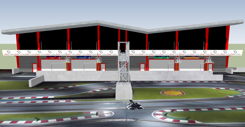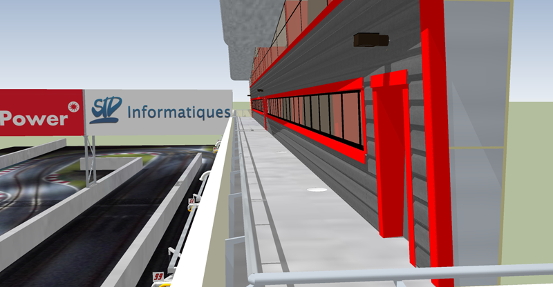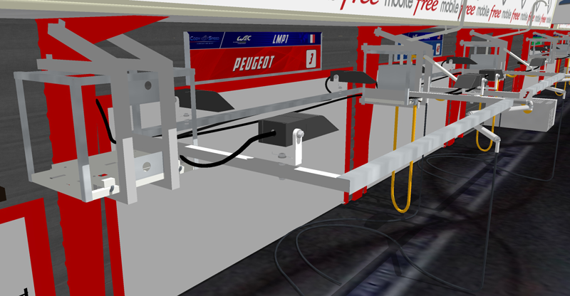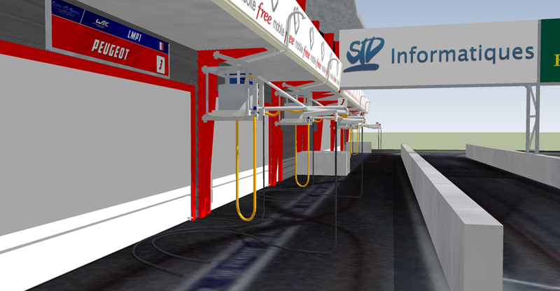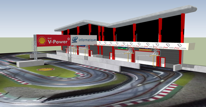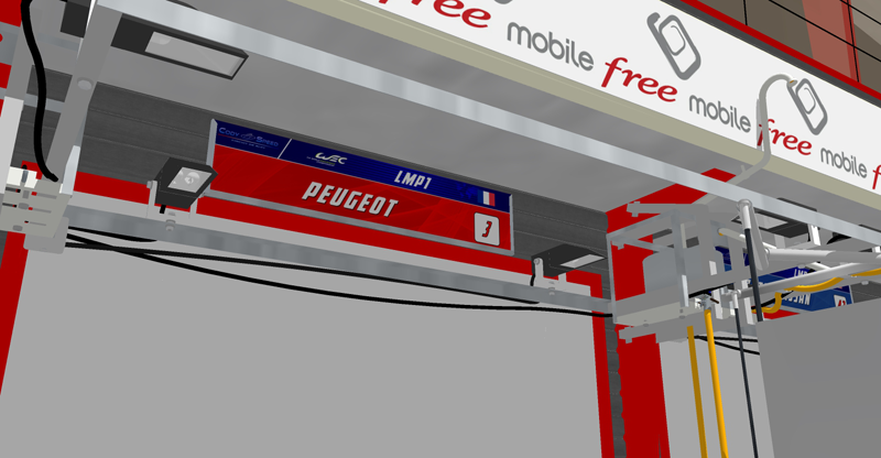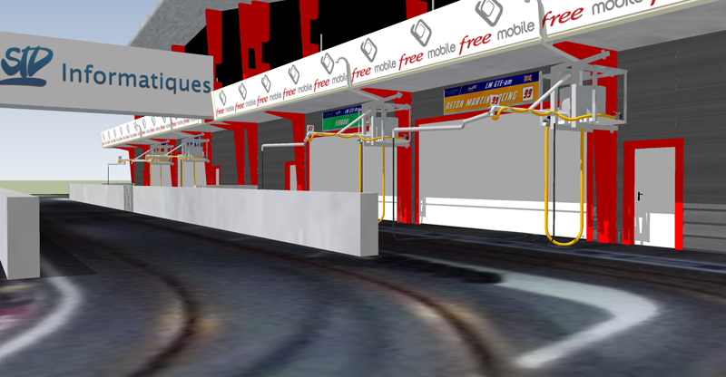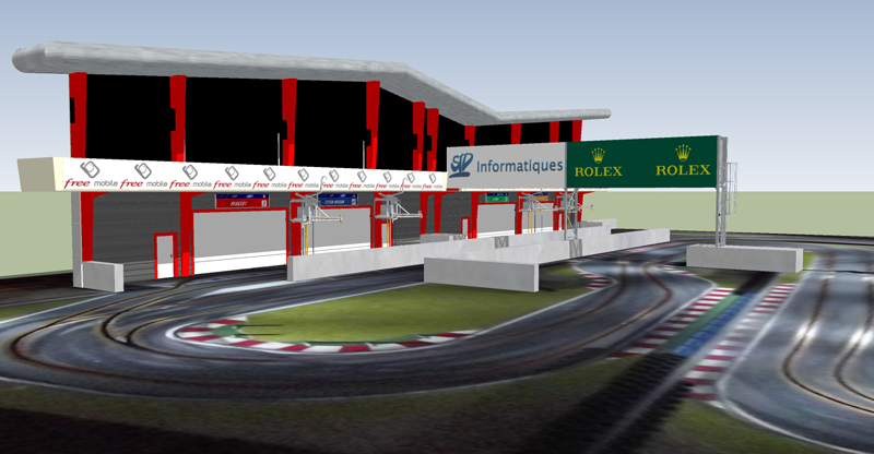 Inspiré de celles utilisées aux 24 heures du Mans. Je voulais un maximum de détails. Donc, j'ai fait des choix qui, en réalité, ne serais pas conforme pour des raisons de sécurité. Mais, j'ai pense avoir trouvé les bons compromis et adapter ceux-ci par rapport à la faible largeur de ma pit-lane.