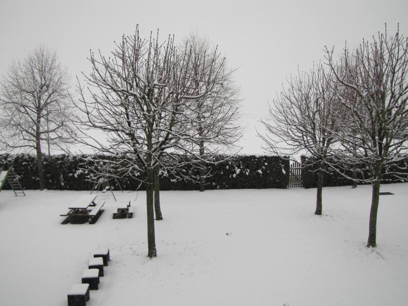 Je sais pas chez vous, mais ici il neige à gros flocons! De la neige pour Noël, ça fait plaisir!