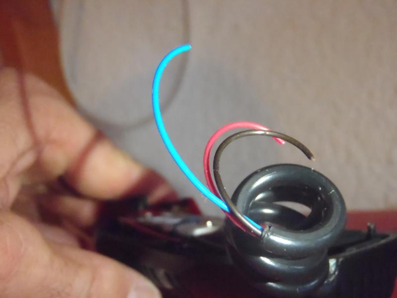 Dénuder le tortillon, apparaissent alors les 3 petits fils électriques ( bleue,rouge et noir)