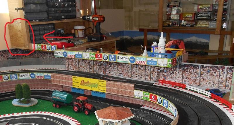 C'est bien entendu éclairé lors des courses de nuit (c’était le but originel) et c'est d'autant mieux que l'on ne voit plus le bazar du dessus...