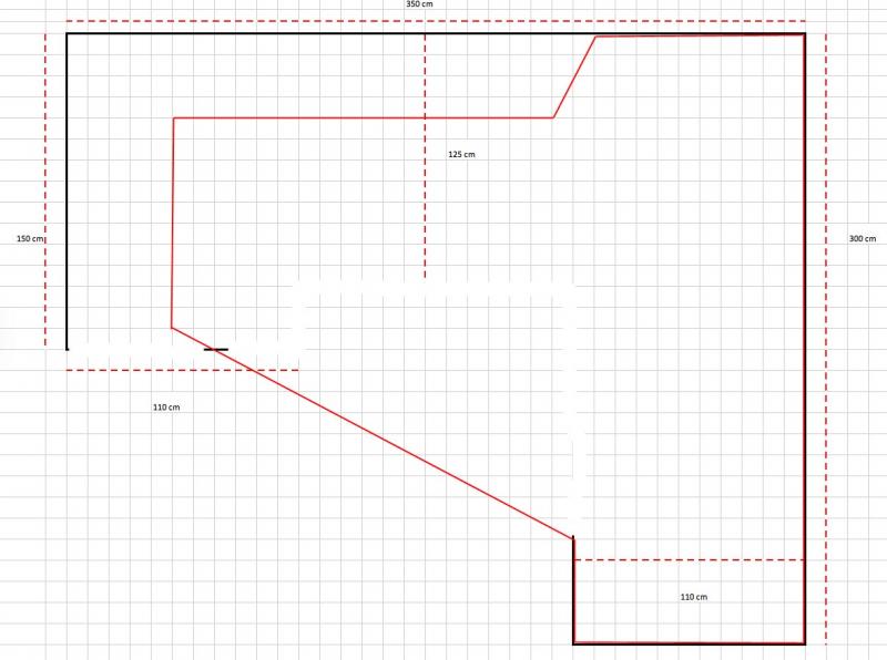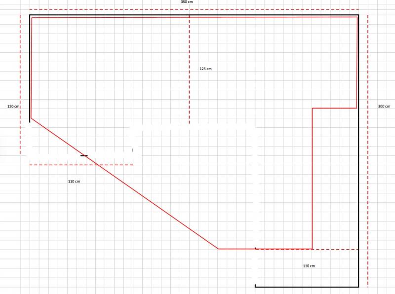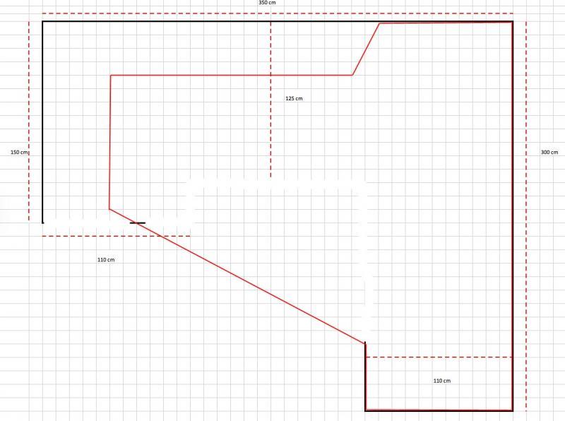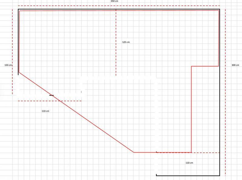 J'ai une pièce vide de 390X330 disponible pour le circuit, je préfère construire un plan de travail à hauteur afin de faciliter le jeu sans être assis au sol, l'inconvénient c'est que le circuit sera moins étendu que s'il était au sol car il doit rester accessible à tout endroit.