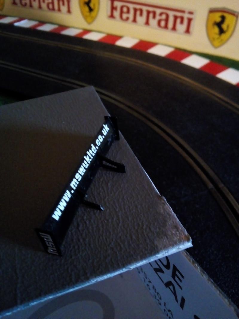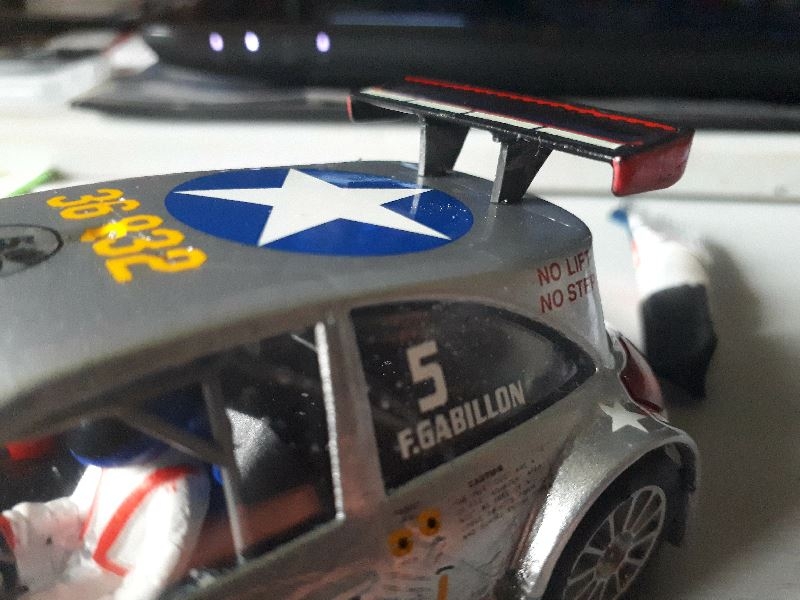 Une pâte de fixation de l'aileron est cassée, j'envoie un message au gars de slot car union et il me dit que scalextric ne fabrique pas ces pièces pour des voitures récentes.