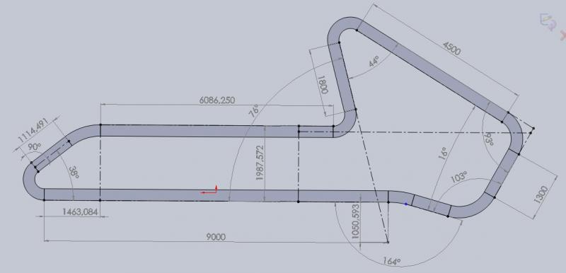Malheureusement, je ne dispose pas d'un plan détaillé du circuit (longueur des droites/virages, rayon/angle des virages et élévations). Pour la modélisation du circuit, j'ai donc essentiellement travaillé avec une photo satellite, deux plans du début des années 60, une règle, un rapporteur et Solidworks.