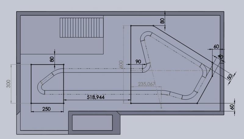 Je bosse actuellement sur un projet de construction d'une maison en province. Aussi, me suis-je dis que c'était le moment, avant de boucler les plans, de réfléchir à l'implantation de ma future piste bois. A l'étage, du bâtiment principal, j'ai donc prévu une pièce de bonne dimension qui doit me permettre entre autres choses de construire une piste bois.