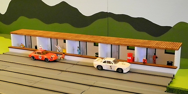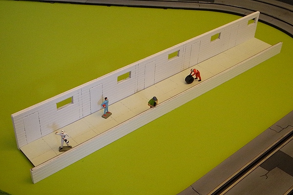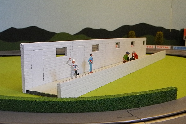J'ai pas trop avancé sur le circuit lui-même mais j'ai commencé les décors au 1/43, à commencer par les stands