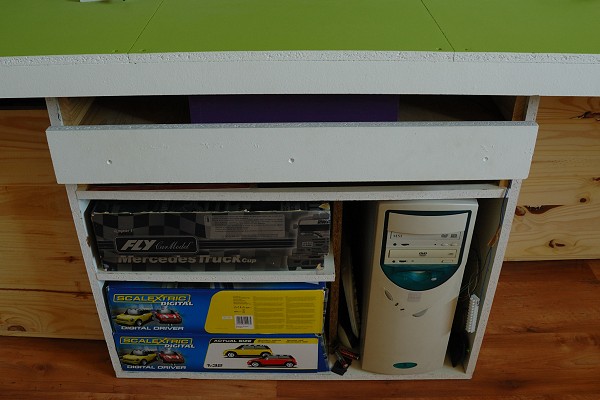 Le tout dans un tiroir sous le plateau du circuit