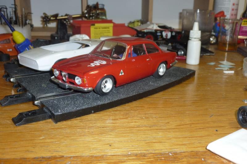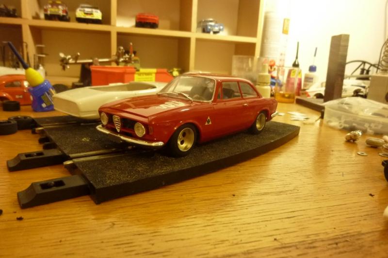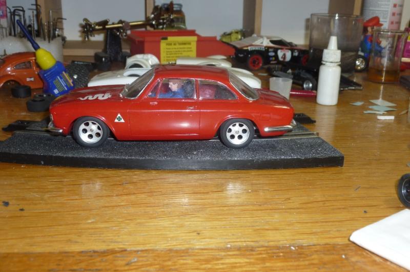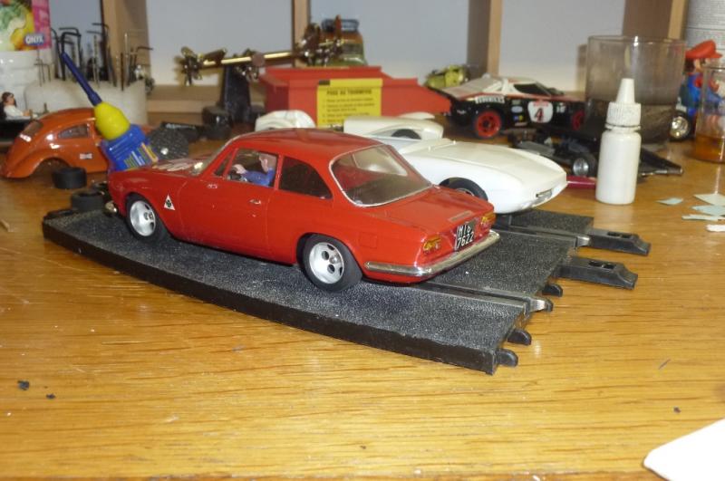 il y a pas mal d'années j'avais monté cette alfa avec une bidouille de 2 chassis collés et des roues et pneus de camion fly (ce qui à l'époque se rapprochait le plus de la taille des roues de la maquette), résultat: une auto sympa mais au roulage très délicat...