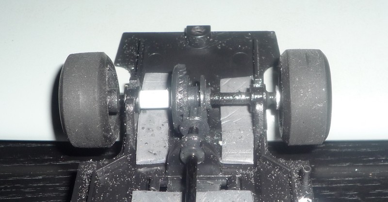 Le moteur (le mien en tous cas !) est TRES puissant, beaucoup plus que celui des Daytona et GTO. C'est pourtant un Mabuchi standard "bande noire", et la transmission a l'air standard aussi (9x27 ?).