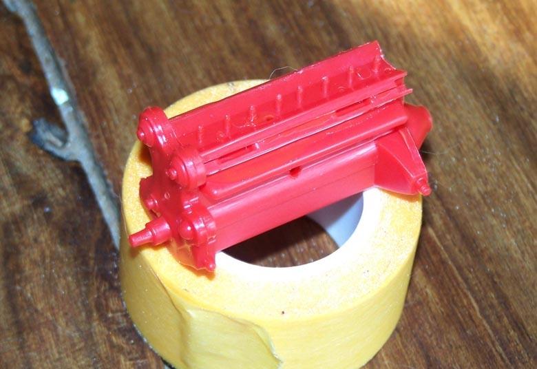 En regardant les photos, on remarque que le block moteur est de couleur alu, alors que les cache culbuteurs sont noir. On va donc assembler le bloc et le peindre couleur alu.
