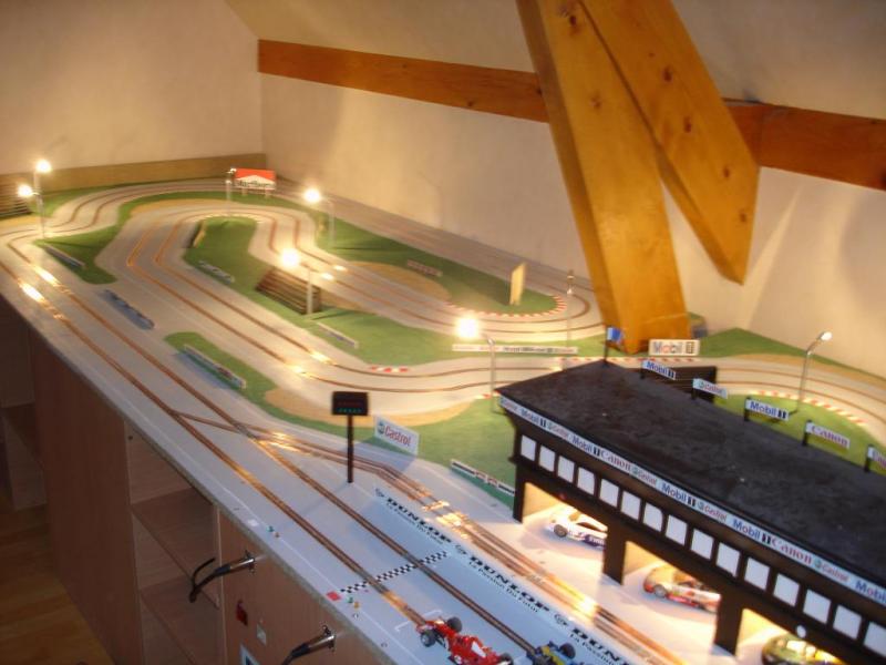 La piste sort d'un week end de travaux. J'ai supprimé les 2 virages assez secs et j'en ai profiter pour rallonger mon plateau de 70 cm pour aller jusqu'au mur