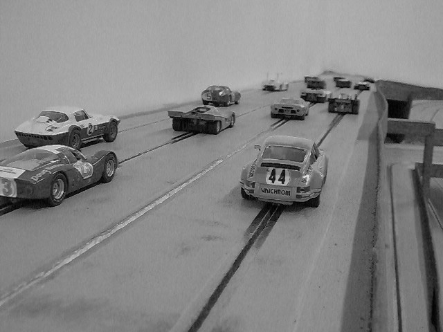 C'est d'ailleurs le plaisir de voir les caisses de Carrera (rod et muscle cars typés vintage) qui m'ont donné envie de me remettre au slot, plus pour les faire/voir évoluer sur une piste et créer le décor qui va avec que le slot lui-même, bien que je me sois éclaté à mon premier Scalectrix à l'àge de 5 ans (merci père Noël) puis de nouveau il y a qques années avec mon fils.