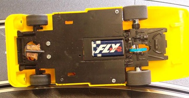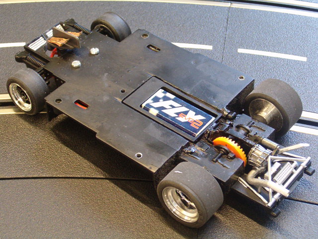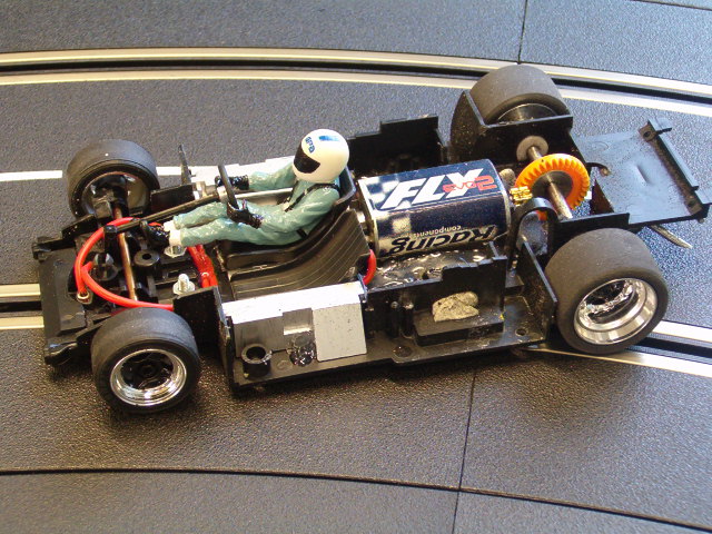 bon il faut que je lui refasse un aileron , sinon chassis jouef , moteur scalex transmission ninco et équipées de pahres av et ar