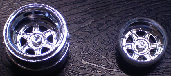 le support de guide est la partie av d'un chassis slot classic,les jantes et l'axe av sont celles de la maquette.les jantes ar ont ete equipées avec un insert fait a partir de la jante tamiya